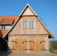 Der Form und Größe sind dabei keine Grenzen gesetzt, allerdings sehen Fachwerkhäuser in ihren "gedachten" Proportionen immer noch am besten aus. Besonders hübsch ist es, wenn auch die Fenster oder Türelemente dem alten Vorbild entsprechen gestaltet werden. |