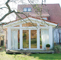 Da das Dach nicht aus Glas ist, heizt sich der Wintergarten nicht so leicht auf. Die solaren Erträge durch die tiefer stehende Wintersonne können jedoch voll genutzt werden.