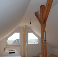 Besonders schön wirkt ein ausgebauter Dachboden, wenn die alten Stiele noch erhalten bleiben. Aufgearbeitet sind sie nicht nur tragendes sondern auch schmückendes Element!